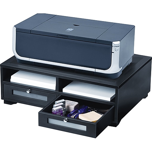 8h x 22w x 15 1/4d,four compartments,rear access space to cleanly manage cables and allow for positioning flush against the wall,two large drawers with frosted glass windows for supplies. We love the mind reader printer cart because it saves valuable desktop space. Printer stand with storage comes in different sizes. Assembly is easy, thanks to an ergonomic. Best 5 desktop printer stand with storage drawers 1.